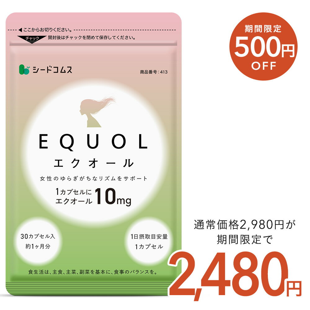 【3/5開始★クーポンで2,480円】エクオール 1ヶ月分 ≪1カプセル10mg配合≫ 送料無料 シードコムス サプリメント サプリ 大豆イソフラボン 美容 健康 ラクトビオン酸 プラセンタ アスタキサンチン GABA 女性 の悩み