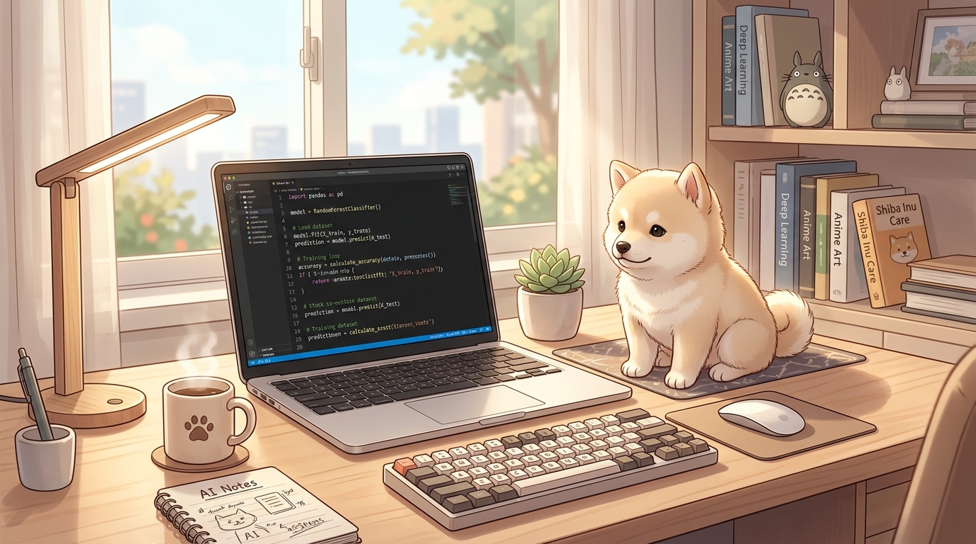 ハク(愛犬の豆柴)が足元で眠っている間に、AIが複雑なPythonの自動化コードを生成してくれる――そんな生活が、もう夢物語ではなく現実に手に入るのです。
